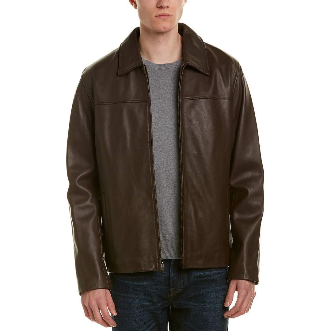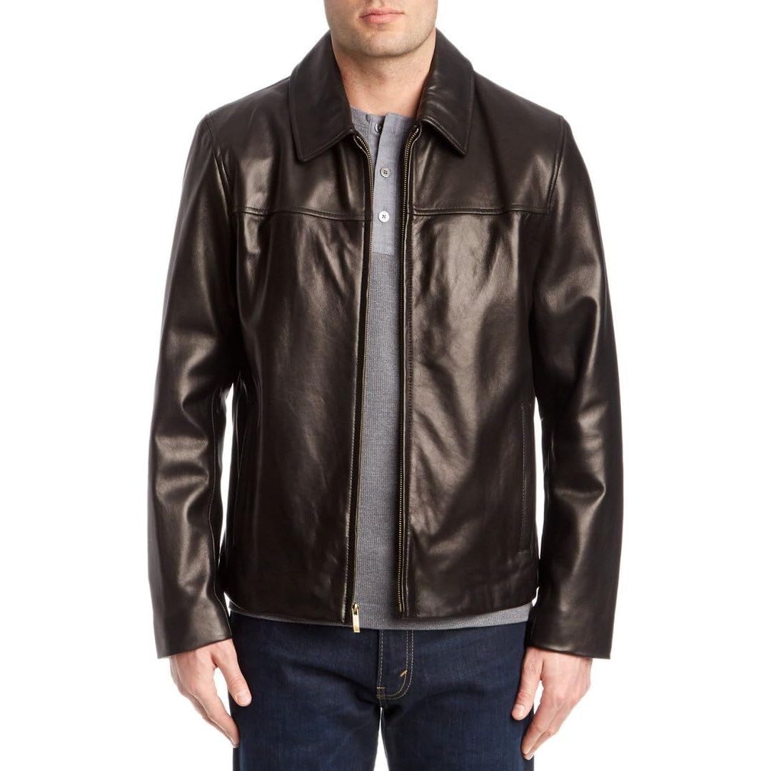 Cole Haan Men's Smooth Genuine Leather Shirt Collar Jacket