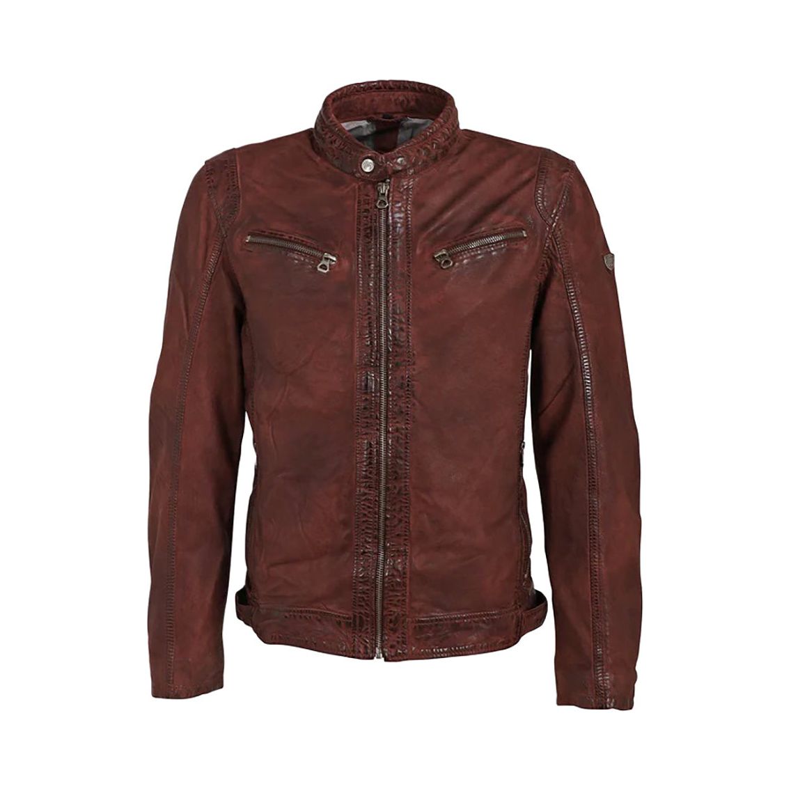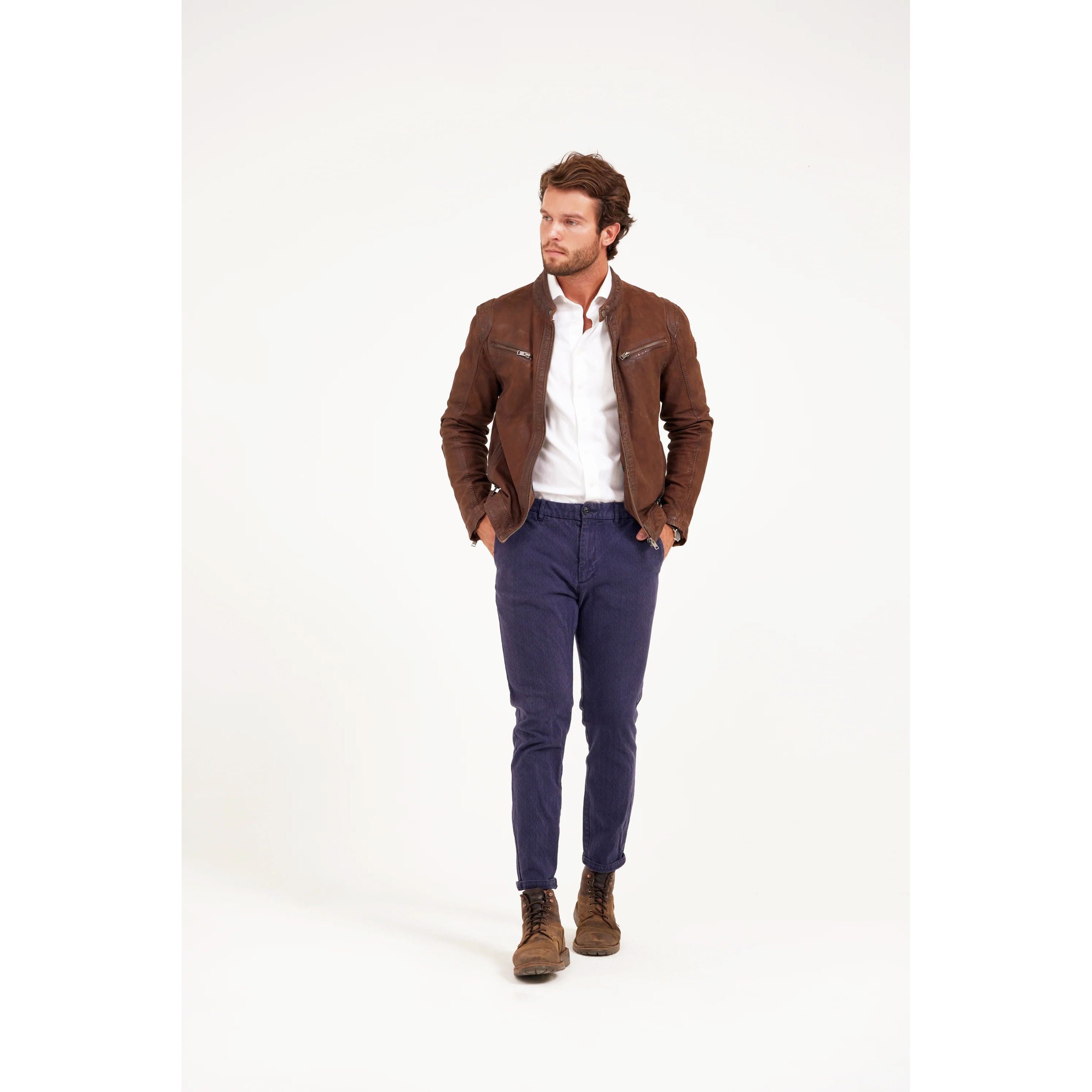 Mauritius Men's Nubuck Racer Leather Jacket, Dark Cognac Real Leather