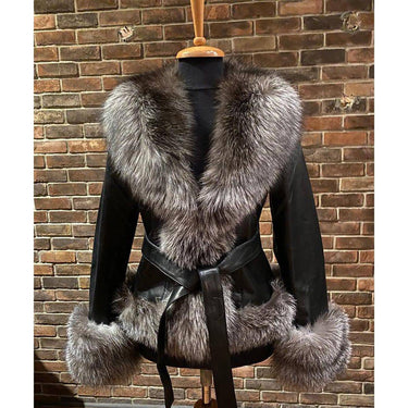 Elevate your outerwear with the BARYA NEW YORK Women's Fox Trim Leather Jacket — a timeless expression of luxury and sophistication. Expertly crafted in Turkey from 100% premium leather and adorned with sumptuous fox trim, this jacket merges fashion-forward detailing with everyday functionality. The detachable belt allows for versatile styling, while the smooth polyester lining ensures comfort in every season. From city streets to evening soirées, this piece adds a touch of refined glamour to any look.