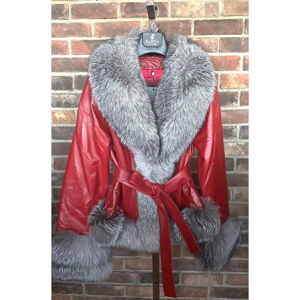 BARYA NEW YORK Women's Leather Jacket with Fox Trim