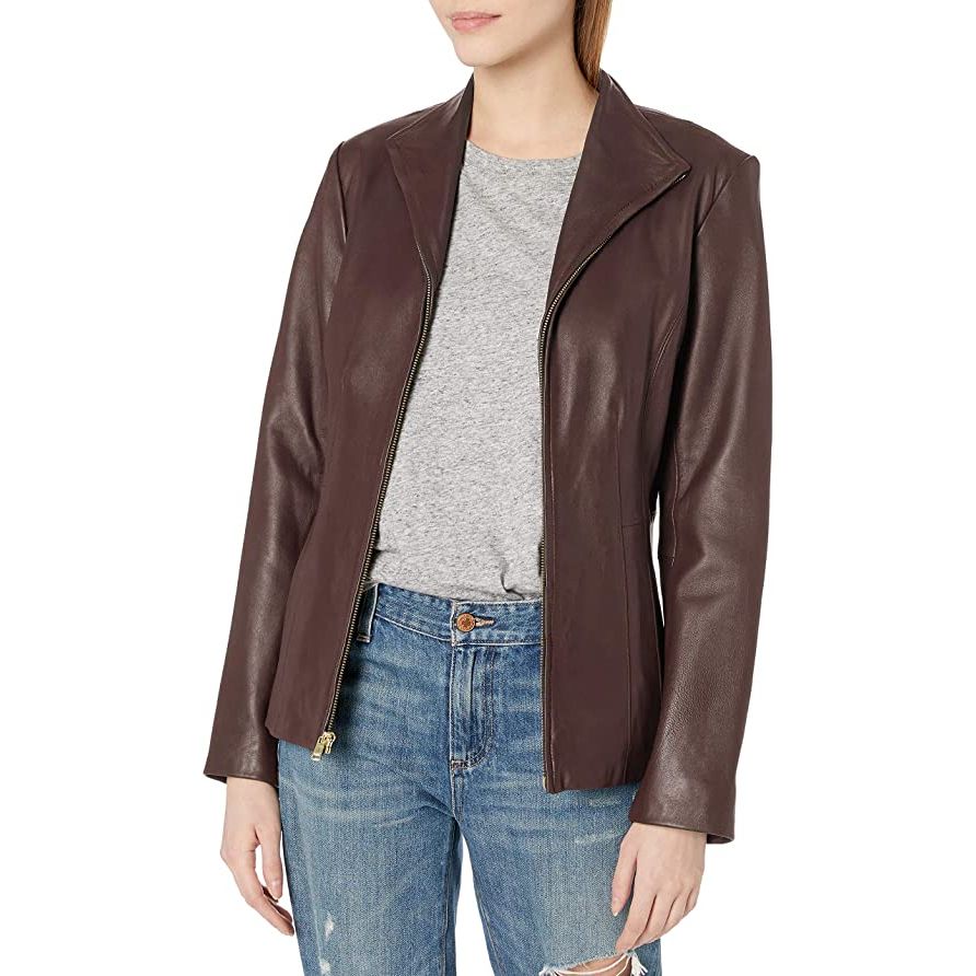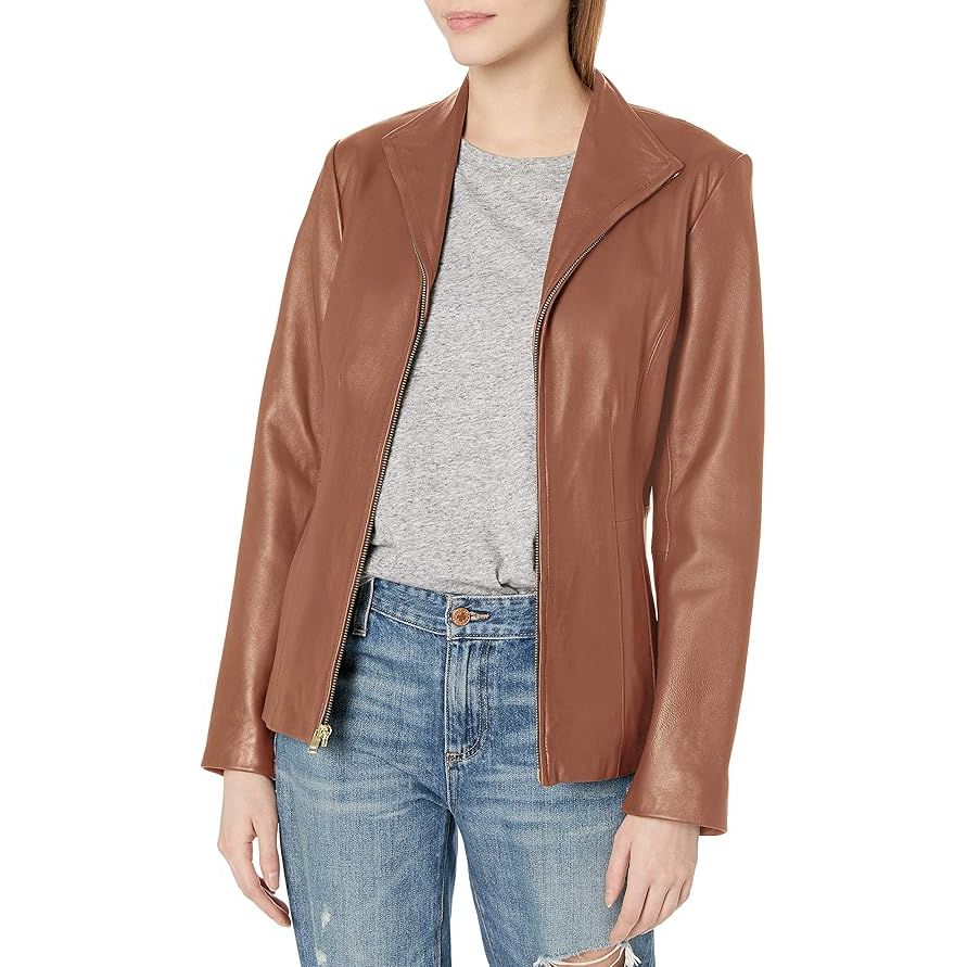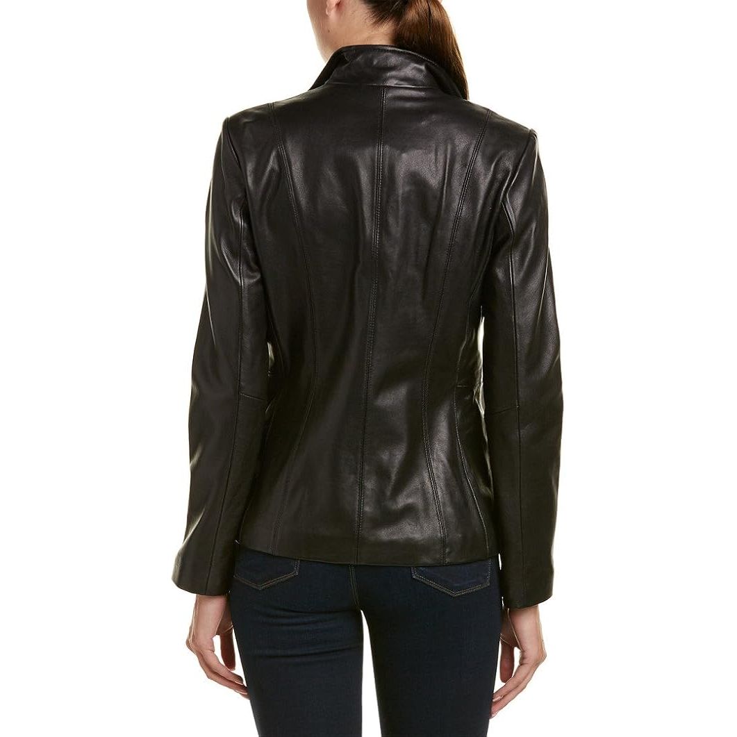 Cole Haan Women's Genuine Leather Jacket with Wing Collar