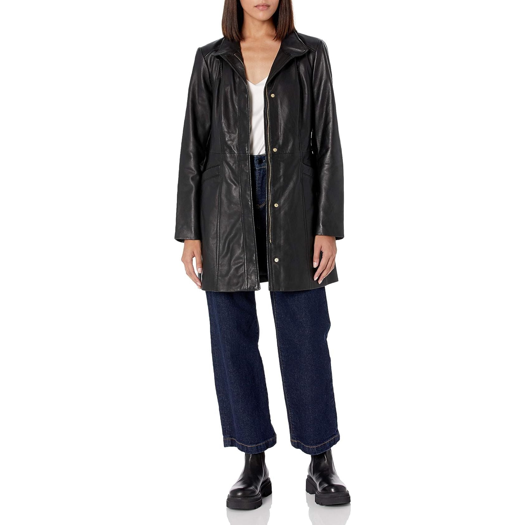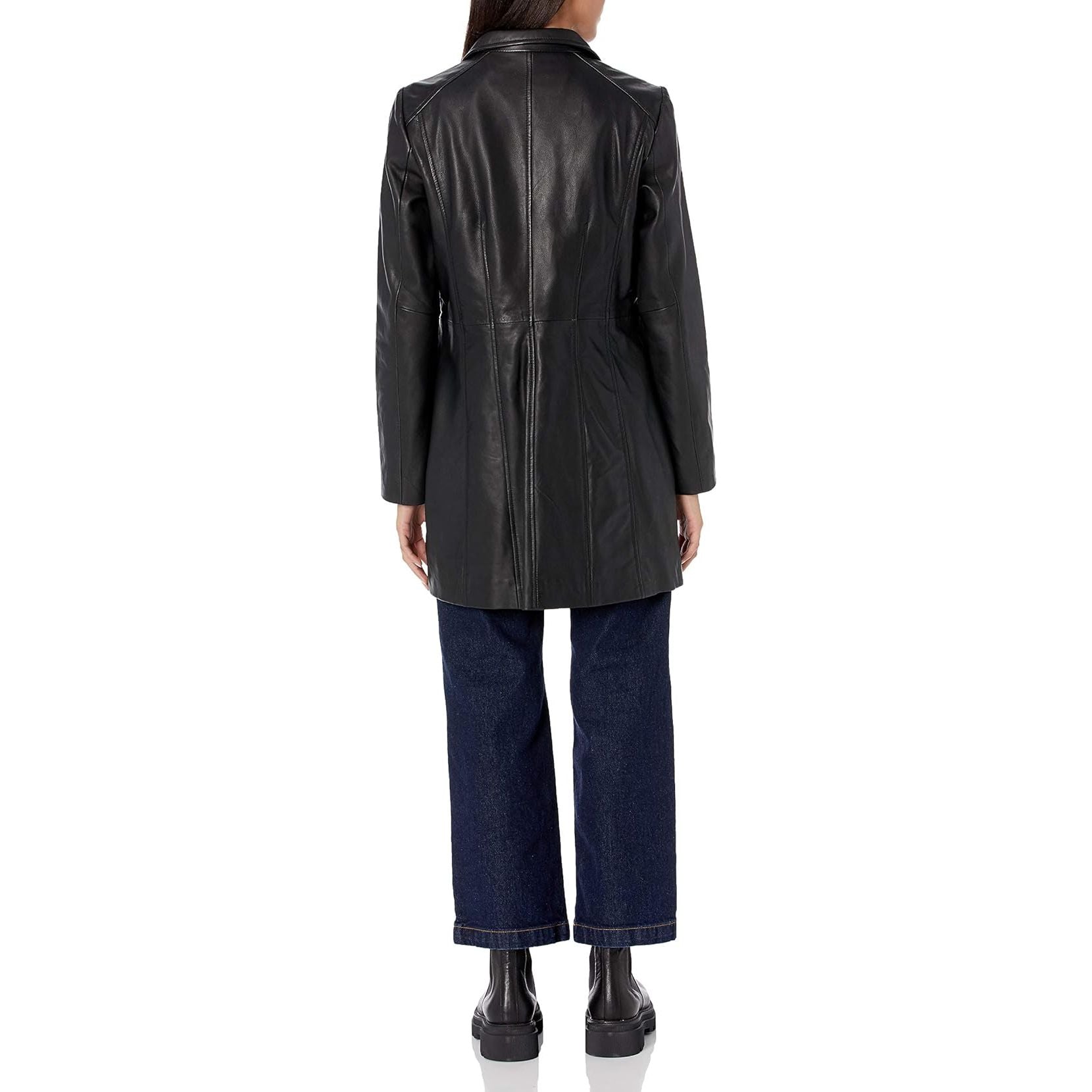 Cole Haan Women's Mid-Length Genuine Leather Collarless Jacket