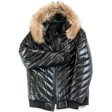 BARYA Leather Bomber Jacket with Real Fur is a classic puffer style that combines genuine leather with luxurious real fur for an unforgettable look. Both materials offer superior durability, breathability and warmth, making this jacket an essential for cold-weather wear.