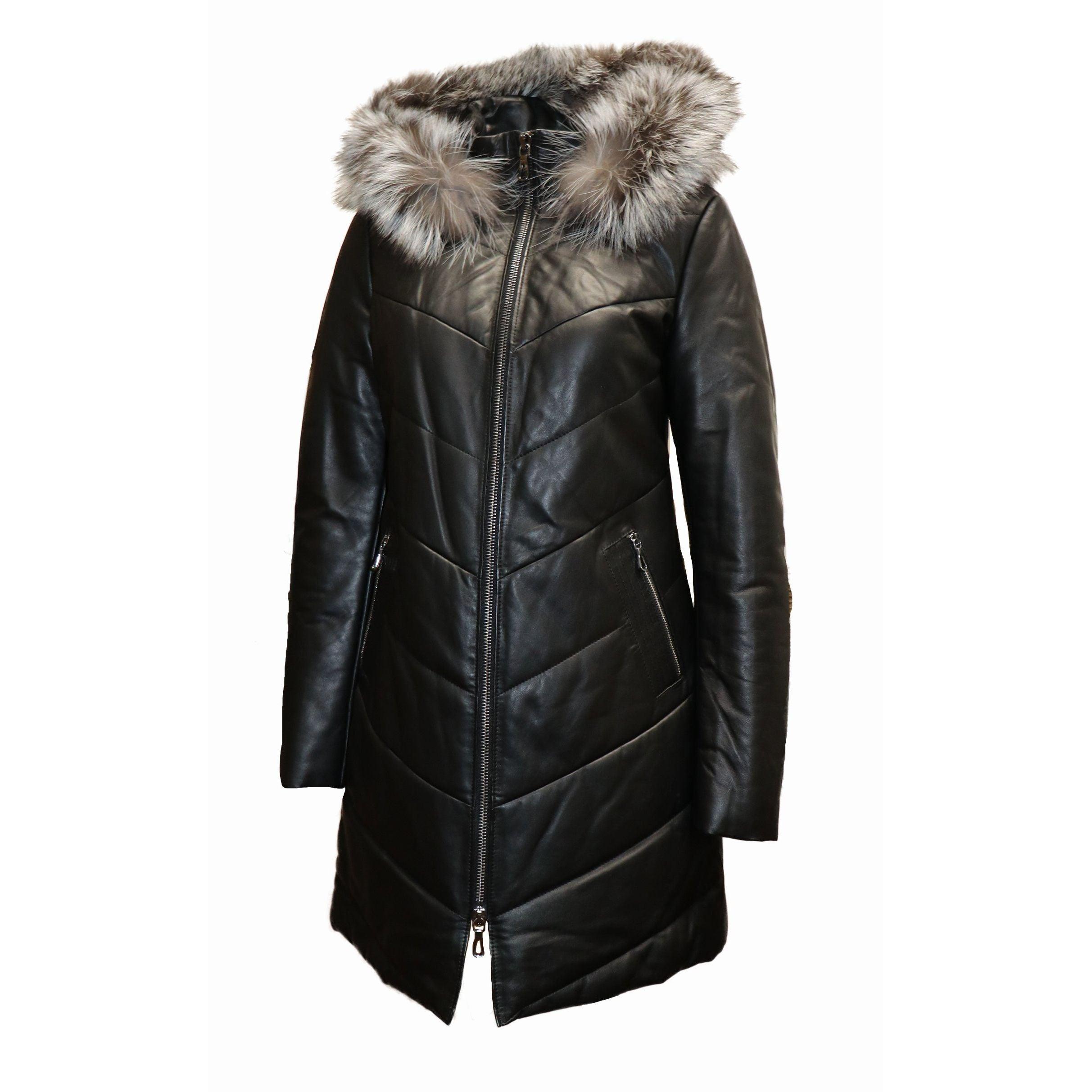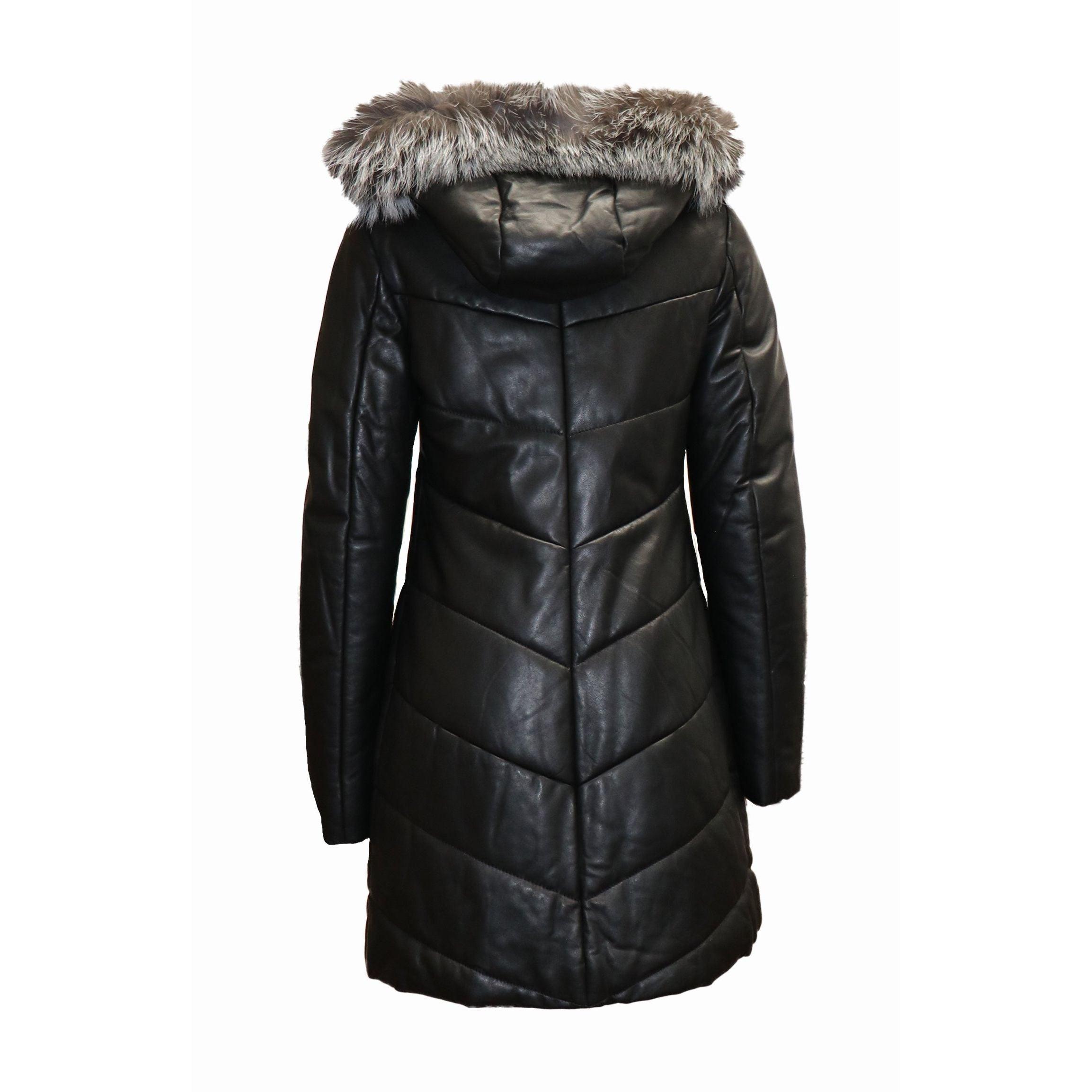 BARYA NEW YORK Women's Puffer Leather Coat with Fox Fur