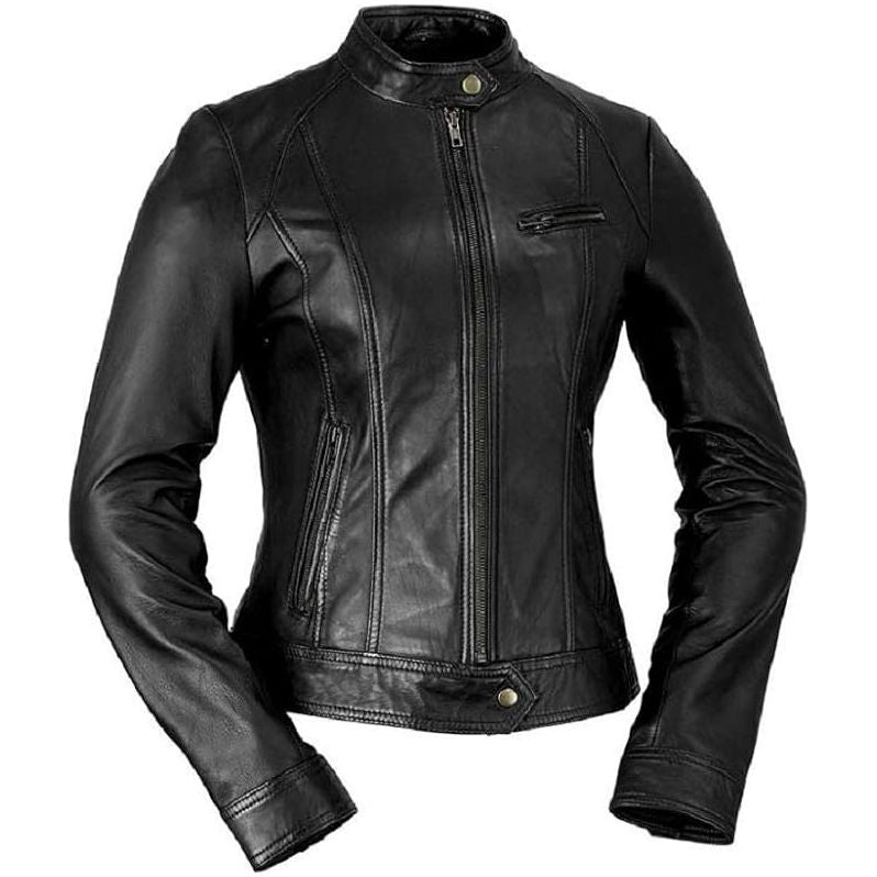 DODICI Women Fashion Moto Genuine Leather Jacket