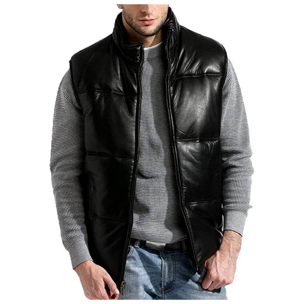 Tanners Ave Men's Puffer Genuine Leather Vest Black